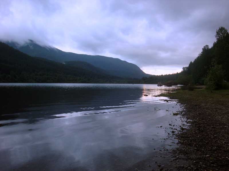At the lake (at the trailhead), the rain began to fall – a perfect endcap to my evening. I snapped a few more pictures of the rain dimpled lake surface and turned back towards the trail home.